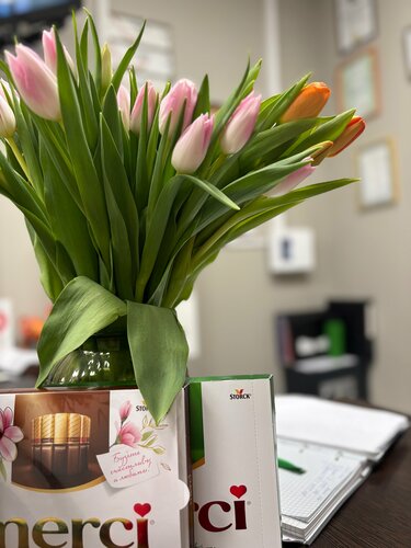 Комфортная температура в кабинете, чистые и стильные помещения. Удобный стол!